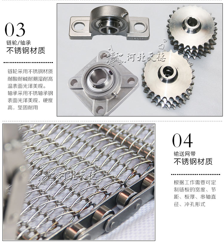 采用不銹鋼網帶作為載體,適用于各種食品行業的烘干、去濕、冷凍等、熱處理等;不銹鋼制成,具有耐高溫、便于清洗等特點。